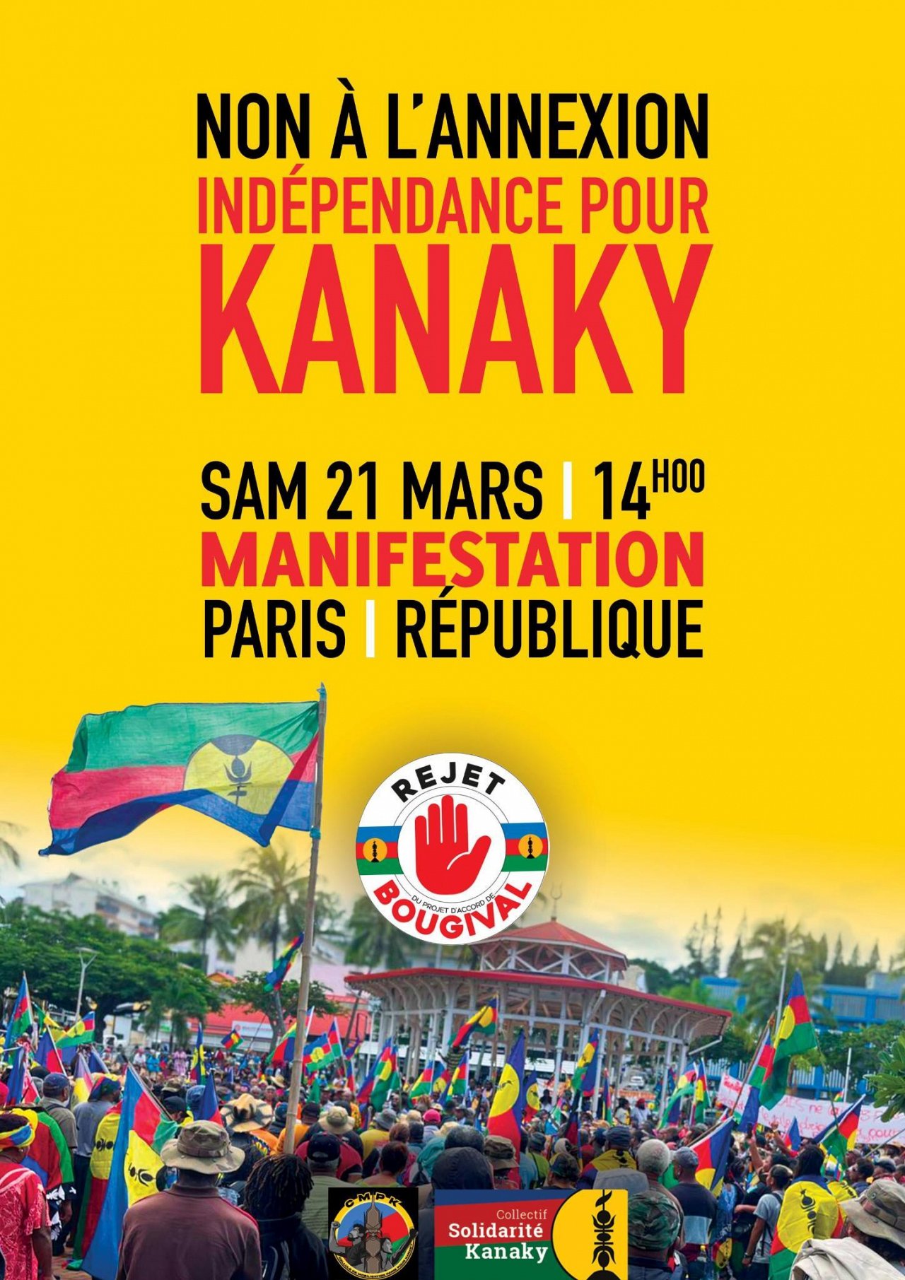Nous, le Collectif Solidarité Kanaky et la CMPK (Cellule de Mobilisation Paris pour Kanaky), appelons à une manifestation nationale, à Paris ce 21 mars à l’occasion de la journée internationale contre les discriminations raciales et l’ouverture de la semaine anticoloniale et antiraciste, en solidarité avec le mouvement indépendantiste mobilisé pour un rejet total de ce texte dénoncé par le FLNKS mais défendu par l’État et l’extrême droite locale.