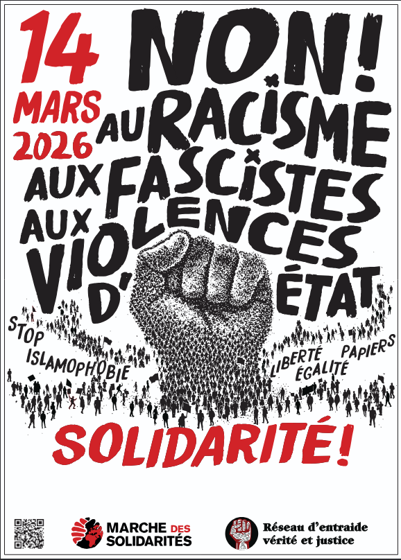 Survie est signataire de l’appel de la Marche des Solidarités, du Réseau d’Entraide Vérité et Justice, des collectifs de sans-papiers, mineur.e.s isolé.e.s en lutte et comités de lutte contre les violences policières à manifester partout en France le 14 mars contre le racisme, le fascisme et les violences d’État.