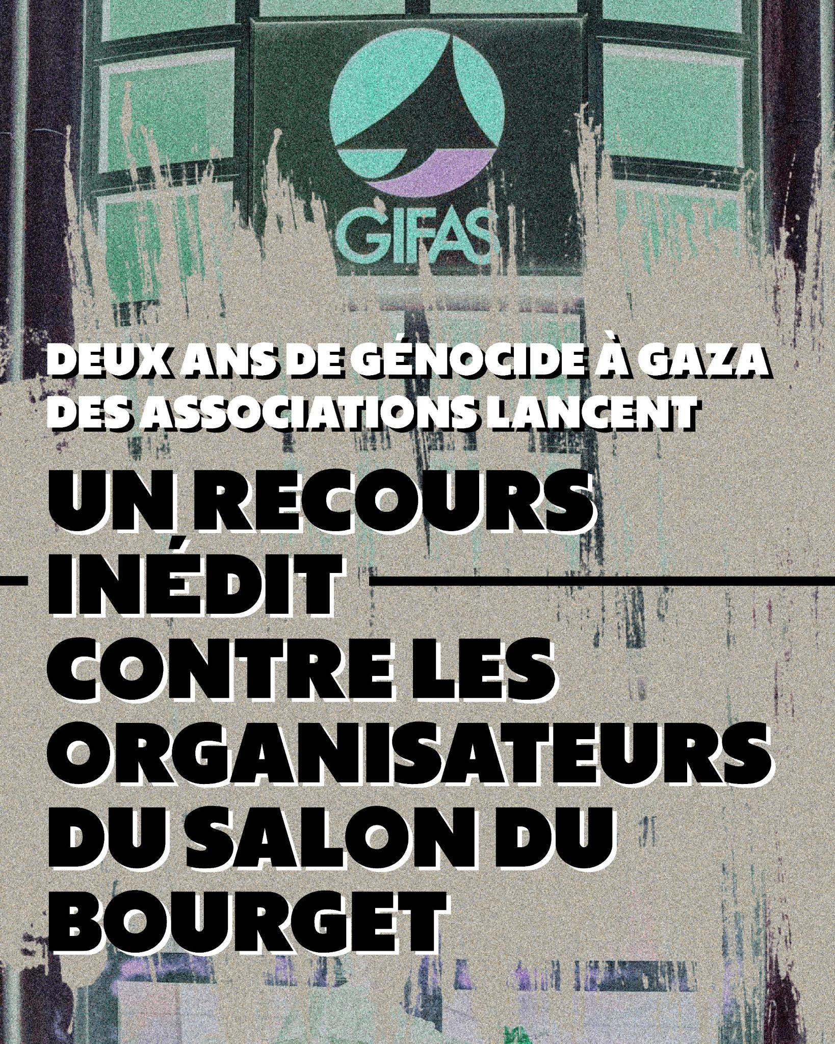 Deux ans après le début de l’offensive israélienne sur Gaza et alors qu’une commission d’enquête indépendante de l’ONU vient confirmer que l’État d’Israël commet "un génocide" [1], Al Haq, Avocats pour la Justice au Proche Orient (AJPO), l’Union juive française pour la paix (UJFP), Survie, et NIDAL, soutenues dans la stratégie juridique par Droit et Mouvements Sociaux (DMS), déposent une nouvelle action en justice pour faute au civil contre les organisateurs du Salon international de l’aéronautique et de l’espace du Bourget (SIAE).